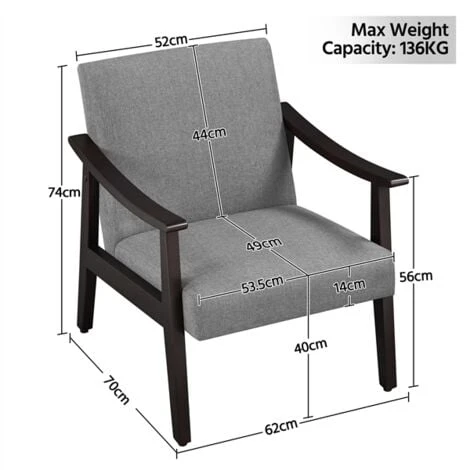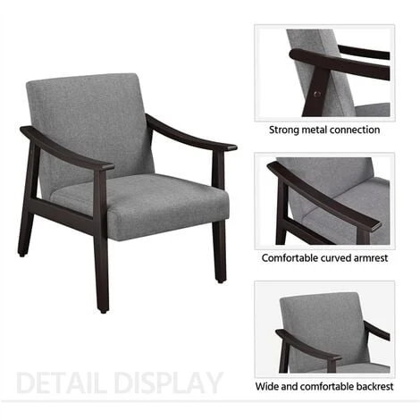 This fabric accent chair brings an iconic modern look to your space! The legs are tastefully painted brown in sturdy rubber wood, with an exposed frame with curved arms, straight sides and splayed tapered legs. When you have done heavy work, the body feels tired, ergonomic design can greatly relieve your fatigue. A high elasticity foam fill, padded seat, and back cushions provide comfortable touch and support. Sitting in this fabric accent chair, you can read books and newspapers, play games and enjoy your leisure time.